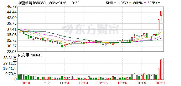 数据宝统计,截至09:54,中微半导成交额12.52亿元,创2022年8月9日以来新高。最新股价上涨5.34%,换手率17.06%。上一交易日该股全天成交额为7.99亿元。